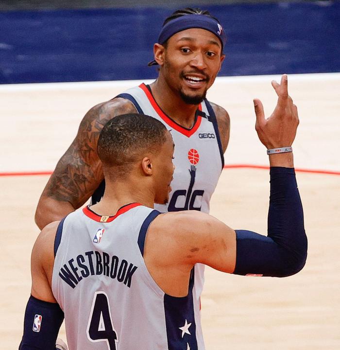 在20-21赛季,比尔为奇才出战60场常规赛,场均能够得到31.3分4.7篮板4.4助攻,场均得分仅次于库里排在联盟第二位;季后赛首轮1-4被费城淘汰出局,28岁的比尔已经为奇才效力了9年,5次进入季后赛却都是早早出局,3次入选全明星。