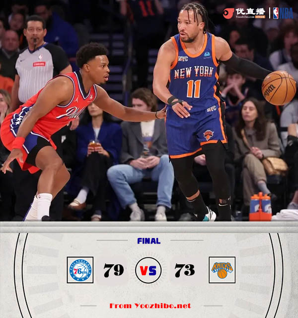 直播车3月11日讯 NBA常规赛尼克斯主场对阵76人,目前尼克斯排东部第五,上场比赛击败魔术,76人则是3连败后已经下跌到东部第七,本场比赛两队多名主力缺阵。比赛开始后两队手感都不理想,第一节比赛两队打成15平。第二节76人首先打出攻势取得领先,尼克斯手感依旧不佳。下半场开始两队依旧是打得十分胶着,在第三节后半段76人一波7-0的攻势将领先优势扩大。最后一节布伦森依旧没有什么状态,尼克斯始终未能扭转局势,最终76人力克尼克斯。