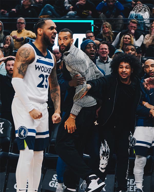 北京时间3月19日,在森林狼和爵士比赛中,森林狼又遭伤病打击,里德头部受伤退出比赛,爱德华兹隔扣科林斯险受伤,一度返回更衣室,所幸手指无碍,死亡隔扣2+1引热议,美媒直呼我的天呐。