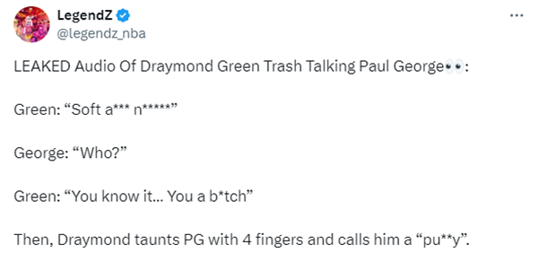今日,美唇语专家解读追梦和乔治之间的一些垃圾话——追梦对普拉姆利犯规后,乔治与裁判沟通,追梦爆粗质问乔治:为什么每个吹罚你们都想要?软蛋。乔治双手叉腰并且追问格林:你说谁?你说谁软蛋?追梦回应:你知道我说谁,为什么你总是那样做。