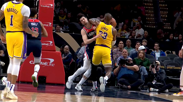 直播车讯 北京时间4月4日,湖人客场击败奇才从而喜提三连胜,詹姆斯全场出战36分钟,18投9中拿到25分9助攻7篮板3抢断,遭争议判罚引热议,上篮肘击阿夫迪亚吃到一级恶犯,可老詹头部被打却只是普通犯规。