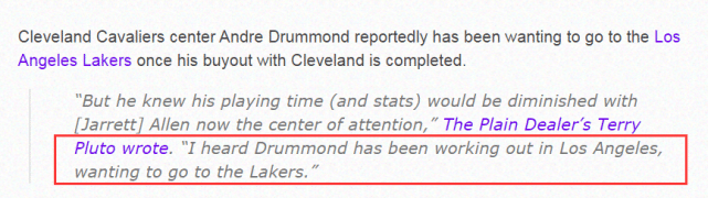 湖人记者特纳也表示,随着庄神和骑士达成买断,湖人成为引进他的领跑者,但他们也要面对其他球队的竞争。ESPN名记沃纳罗斯基在节目上透露,湖人球员们已经在尝试招募德拉蒙德,让他成为自己的队友。