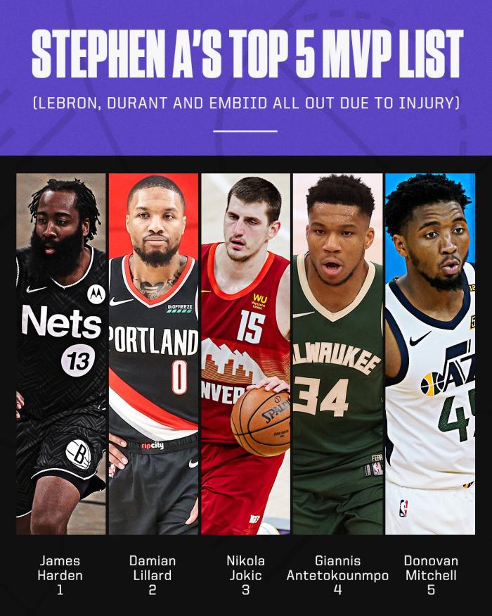 不过据统计,NBA史上还没有球员在赛季中期换队后拿到MVP,你觉得哈登能创造历史成为第一人吗?此前名嘴史密斯曾列出自己心目中的五大MVP,其中哈登排名位居第一。