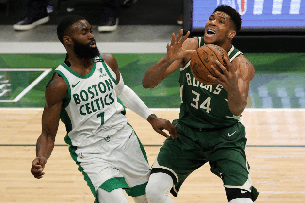 关键时刻,塔图姆三分对飚迪文琴佐,绿军夹击米德尔顿,字母哥内线造犯规两罚一中,塔图姆2+1,沃克投进空位三分,布朗三分也有,绿军追到仅剩2分,生死时刻字母哥撞人被吹进攻犯规,然后两队都不得分,大洛封盖斯玛特,最后2秒,绿军喊完两个暂停,泰斯错失绝杀三分,最终雄鹿险胜复出绿军。