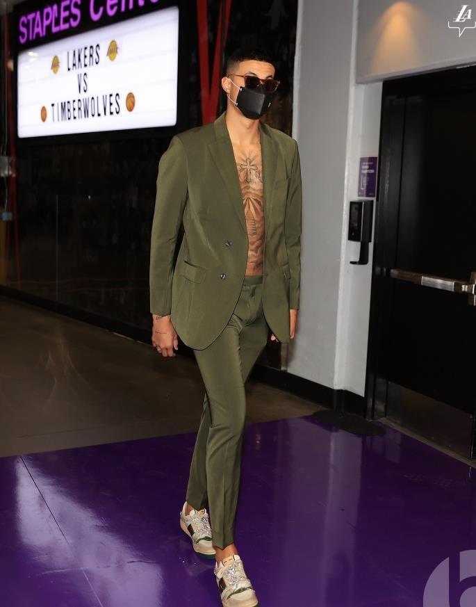 当然了,能赢球也必须要说湖人其他人也都打得不错,全队送出37次助攻,替补三人库兹马、小塔克、哈雷尔合力轰下57分!赛前和赛后的库兹马穿着吸引了记者的注意,上衣没有穿T恤或者其他贴身的衣服,而是大方地露出了自己的胸部!