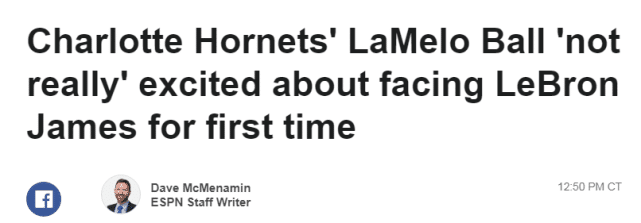 “我的意思是并不会,”三球在采访中说道,“我的成长经历有些不同,并不是什么事都和篮球相联系,所以,真的不会(格外兴奋)。”不过,三球也补充说能够和詹姆斯较量是一件挺酷的事,但他会用平常心来对待比赛,不会在意谁是对手。“我对待每一场比赛都是一样的心态,那就是尝试赢下胜利。”