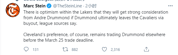 据名记奥康纳报道,湖人队考辛斯很感兴趣,但德拉蒙德是他们的首选,对此名记Stein进一步报道,若德拉蒙德通过买断离开骑士,湖人内部有强烈的信心能得到庄神;目前骑士正在想办法交易庄神,无奈他的年薪高达2880万美元,全联盟都对骑士交易他持怀疑态度。