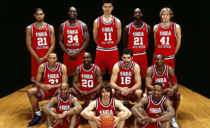 之后就是姚明到来之后的全明星,国内的球迷们对于全明星正赛的关注度加倍提升,而全明星的战袍也都很不错。