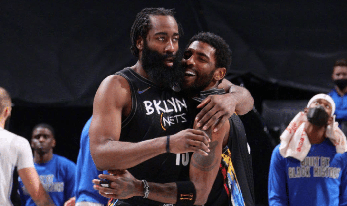 这场比赛期间,欧文想要和哈登击掌,不过哈登没有理会,直接将欧文“揽入怀中”,被球迷们纷纷调侃是“太甜了”、“撒糖”等等。