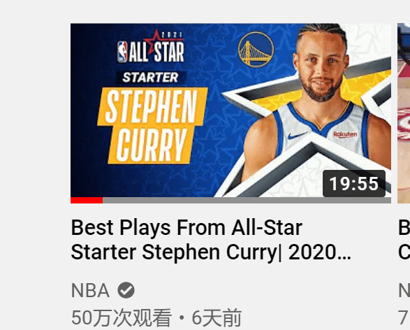NBA官方选取的十大首发的集锦基本都是20分钟左右,因此在观看选择上,球迷更多都会纯粹依据兴趣。从视频播放量来看,库里的集锦已经来到50万次观看,遥遥领先其他的9名全明星首发球员。