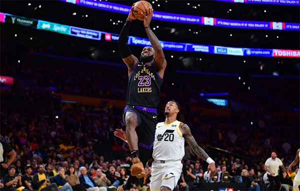 直播车11月22日,NBA季中赛湖人打爆爵士,詹姆斯三节出战24分钟,10投6中拿到17分9助攻7篮板,正负值+14,提前打开下班,坐在替补席大笑太惬意,老詹39000分里程碑之夜狂刷纪录;浓眉14投11中轰下26分16篮板4助攻2抢断。