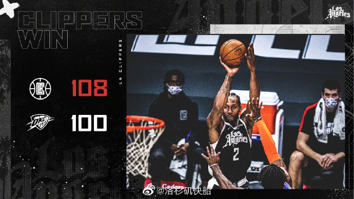 快船108-100战胜雷霆 小卡34+9+8 亚历山大23+6+7