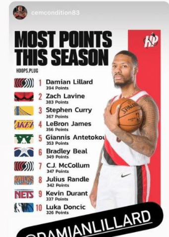 直播车1月24日讯 划水詹这赛季除了打雄鹿,拿了个30+的数据,其余的均在30分以下。但在最近利拉德转发的赛季至今得分榜上,最近火热的篮网三巨头无缘前三,老詹以356分排名第四。前三名分别是库里的363分,拉文的383分,利拉德的394分。没有一点出勤率,是排不了总得分榜前五的。36岁划水詹这出勤率,不得不让人敬佩啊!