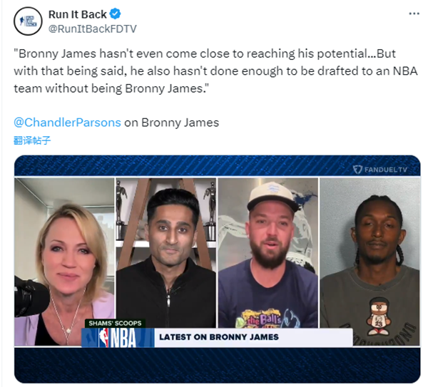 前NBA球员钱德勒-帕森斯在节目中表示:我们还不知道里奇-保罗和谁聊过了,也不知道詹姆斯有没有和谁聊过。因为詹姆斯说过可能会和选择布朗尼的球队签约,这是一个重大的决定。说道布朗尼的比赛,他的大学生涯并不是完美的,但他确实有潜力,尤其是防守端,说不定能够达到NBA级别,他还没有充分发挥他的天赋。