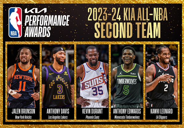 最佳二阵:浓眉、杜兰特、小卡、爱德华兹和布伦森