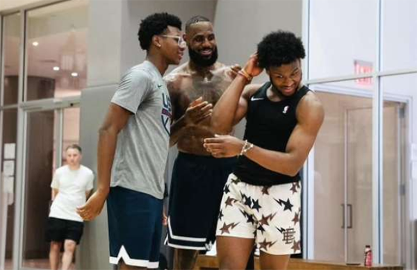 今夏布朗尼被湖人用55号签选中,而且双方签下4年790万美元新秀合同,詹姆斯则与湖人续签2年1.01亿美元新合同,新赛季詹姆斯父子都为湖人效力,可老詹已经表态,打球时布朗尼不能喊他爸爸,可以喊他23号或者GOAT。