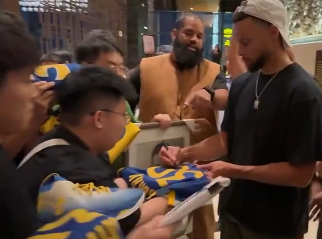 虽然是凌晨飞到沈阳,但库里下榻的酒店仍旧被球迷围得水泄不通,据悉,库里直接从地库进入酒店,没有库里的空车来到酒店门口时,无数球迷从高呼库里MVP到失落;不过之后,库里从酒店中出来,与福克斯一起为有序排队的球迷耐心签名,尽可能满足每一个球迷的签名要求,签名期间库里咧嘴大笑,福克斯也十分开心。