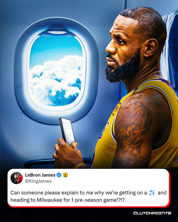 直播车讯北京时间10月10日,詹姆斯公布表达对湖人季前赛赛程的不满,发推写道:有人能给我解释一下,为什么我们要坐飞机去密尔沃基进行一场季前赛吗!?!