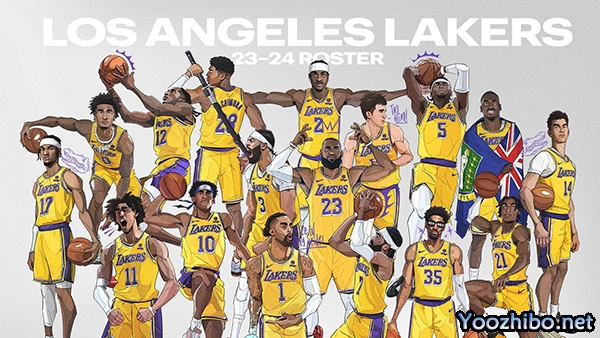 在湖人全队漫画版合影中,17名球员都在其中,詹姆斯和浓眉两大巨头位居C位凸显球队的地位,老詹身穿23号并且做出戴王冠的庆祝动作;浓眉戴着发带怒吼,八村垒身背日本武士刀十分抢镜。