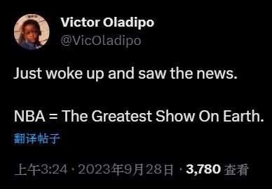 雷霆后卫奥拉迪波发推感叹道:“人在床上,刚刚睡醒看到新闻。NBA=全地球最伟大的秀