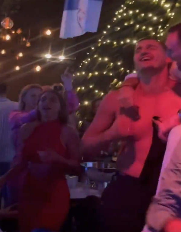约基奇现身参加塞尔维亚国家队的狂欢派对,28岁的约基奇先是穿着上衣尽情摇摆,之后他脱掉黑色T恤,赤裸上半身尽情唱歌跳舞,彻底放飞自我;约基奇浑身肥肉、大肚腩和游泳圈十分抢镜,看来今年休赛期,约老师又胖了不少。