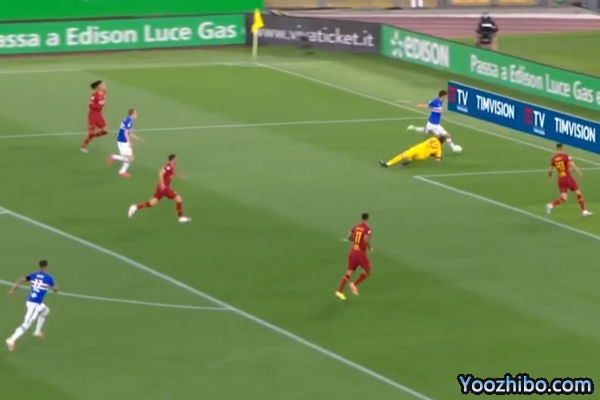 第19分钟,罗马左路传中,禁区内桑普球员头球解围出现失误,姆希塔良禁区内截住皮球转身低射打的太正,奥德罗将球挡了一下后轻松没收。