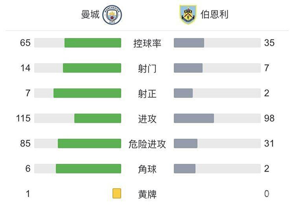 曼城2-0伯恩利 B席首开纪录德布劳内劲射建功