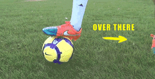 2、将皮球拉向你另外一只脚30-60公分,距离的多少视你当时的空间决定,但也应尽可能地少,减少防守球员的反应时间。