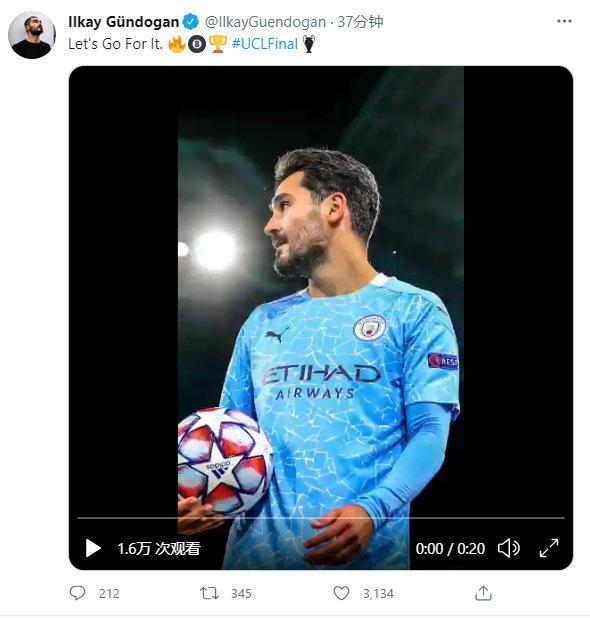 没有大碍! 京多安更新社媒: 向欧冠决赛前进!
