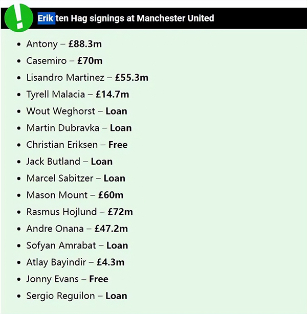 直播车10月11日讯 曼联本赛季开局不佳,红魔目前在英超积分榜上排名第十,在欧冠小组中垫底。自去年夏天执掌红魔以来,53岁的滕哈格已经获得了大量资金。数据显示,他已经豪掷4.07亿英镑买人,而这个金额还将继续提升。据悉,荷兰人现在打算再次补强边锋位置,两名日本球员已经进入他的选择范围,布莱顿的三笘薰或者皇家社会的久保建英,都可能成为桑乔替代者。