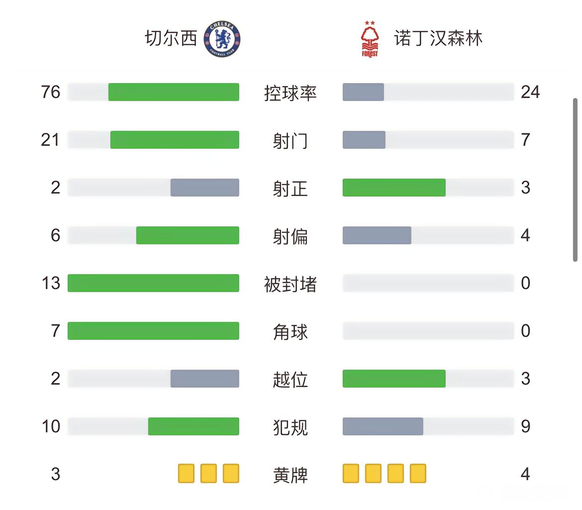 直播车讯 :北京时间9月2日22:00,英超第4轮,切尔西主场迎战诺丁汉森林。上半场比赛,阿沃尼伊门前近距离打飞,恩佐远射稍稍高出横梁,切尔西三人染黄;下半场,凯塞多失误导致埃兰加破门,斯特林送倒三角妙传,雅克松错失绝平良机。最终,切尔西主场0-1不敌诺丁汉森林。