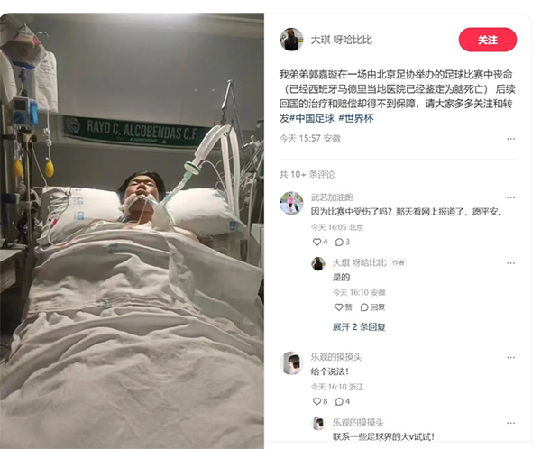 直播车讯 北京时间2月11日,北京国安俱乐部U19梯队队员郭嘉璇的亲哥哥在社媒发声透露,自己的弟弟在代表北京全运队去西班牙马德里集训时。不慎重伤被马德里当地医院鉴定为脑死亡,后续回国的治疗和赔偿却得不到保障。