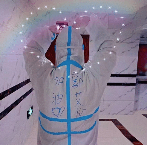 郭艾伦留洋还是留队悬而未决,外界猜测的声音也很多,球迷们确实也都很关心郭艾伦下个赛季在哪里打球。一名身在一线为锦州市民做核酸检测的医护人员送上鼓励,她在不透气的防护服背面写着“郭艾伦加油!”还做出了比心的动作,很可爱。