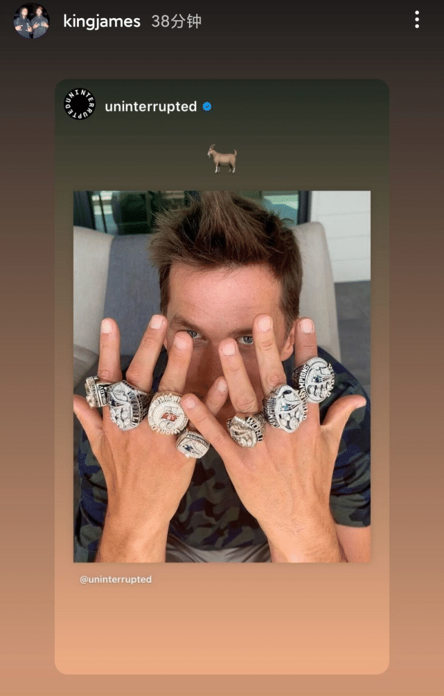 直播车01月30日讯 ,湖人球星詹姆斯更新社媒,转发了NFL传奇汤姆-布雷迪秀戒指的照片。照片上,布雷迪举起双手,晒出了自己的7枚超级碗冠军戒指。不少球迷调侃,老詹可能是发自内心的羡慕了。